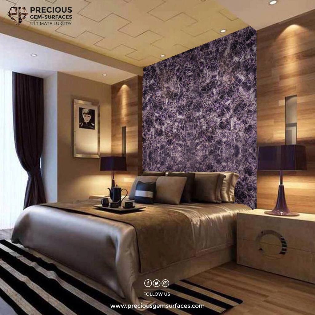 • Amethyst Accent Walls: Utilizing amethyst gemstone slabs as a feature wall can create a stunning and impactful design statement, enhancing the ambiance of any room.