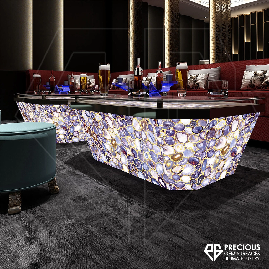 Amethyst's unique characteristics make it an exceptional choice for those seeking to infuse their living spaces with a touch of timeless elegance and sophistication. Whether you're looking to create a stunning kitchen countertop, a luxurious bathroom vanity, or a mesmerizing feature wall, amethyst gemstone slabs from Precious Gem Surfaces offer a versatile and visually stunning solution.