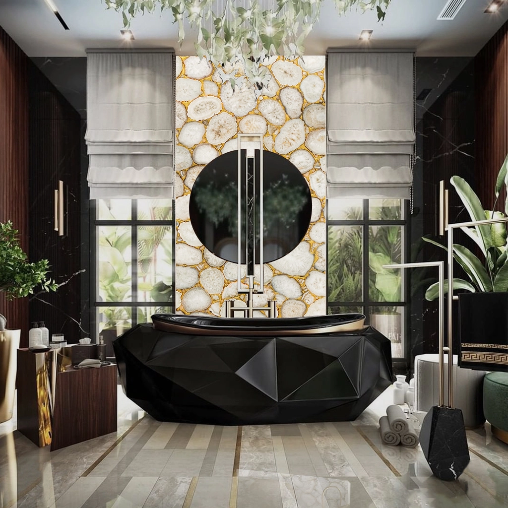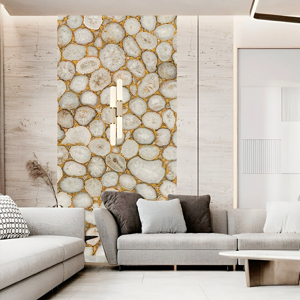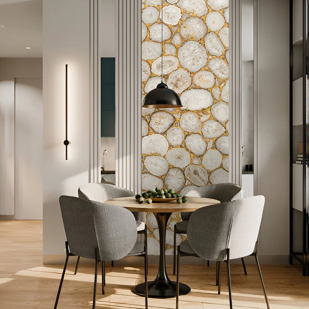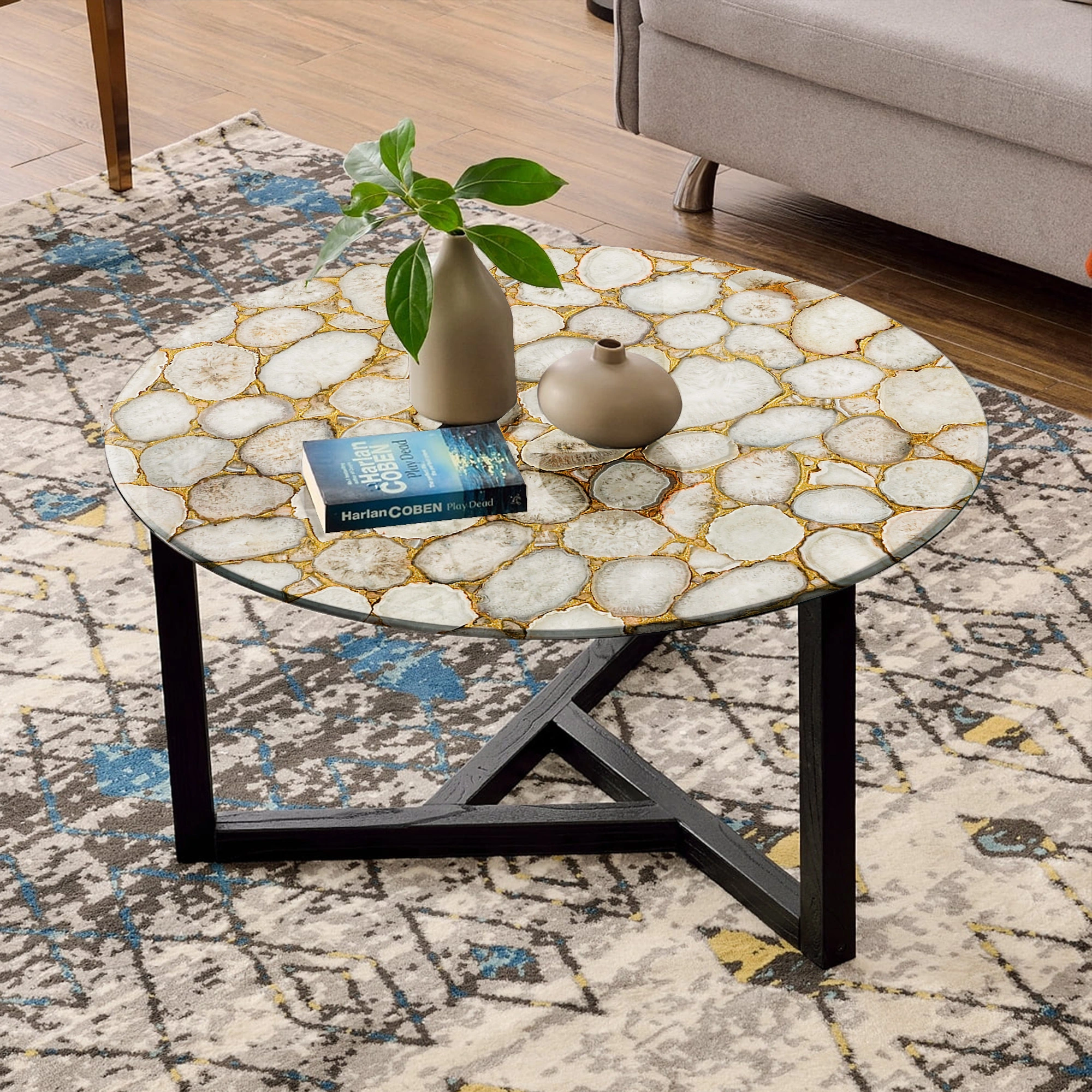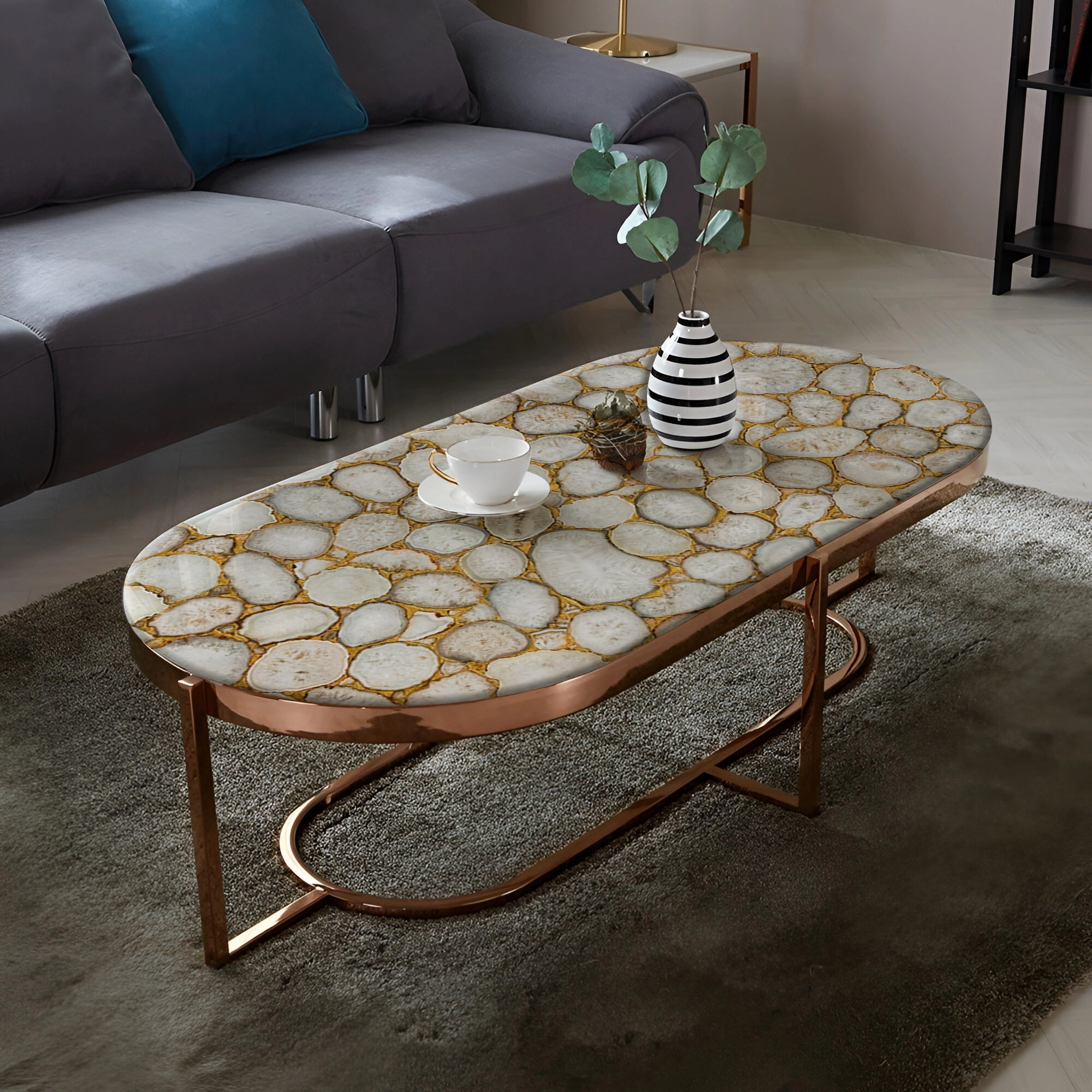 The captivating crystal agate with golden glitter agate is a stunning fusion of natural elegance and radiant allure. Featuring the translucent clarity of crystal agate combined with the mesmerizing shimmer of golden glitter inclusions, this unique gemstone slab commands attention as a centerpiece in any space. The interplay of light and shadow across the agate's banded patterns creates a mesmerizing visual effect, evoking a sense of timeless beauty. Prized for its durability and versatility, this crystal agate with golden glitter can elevate a wide range of interior design applications, from countertops and backsplashes to decorative accessories. A true work of nature's artistry, this captivating agate slab is a testament to the wonders of the earth.