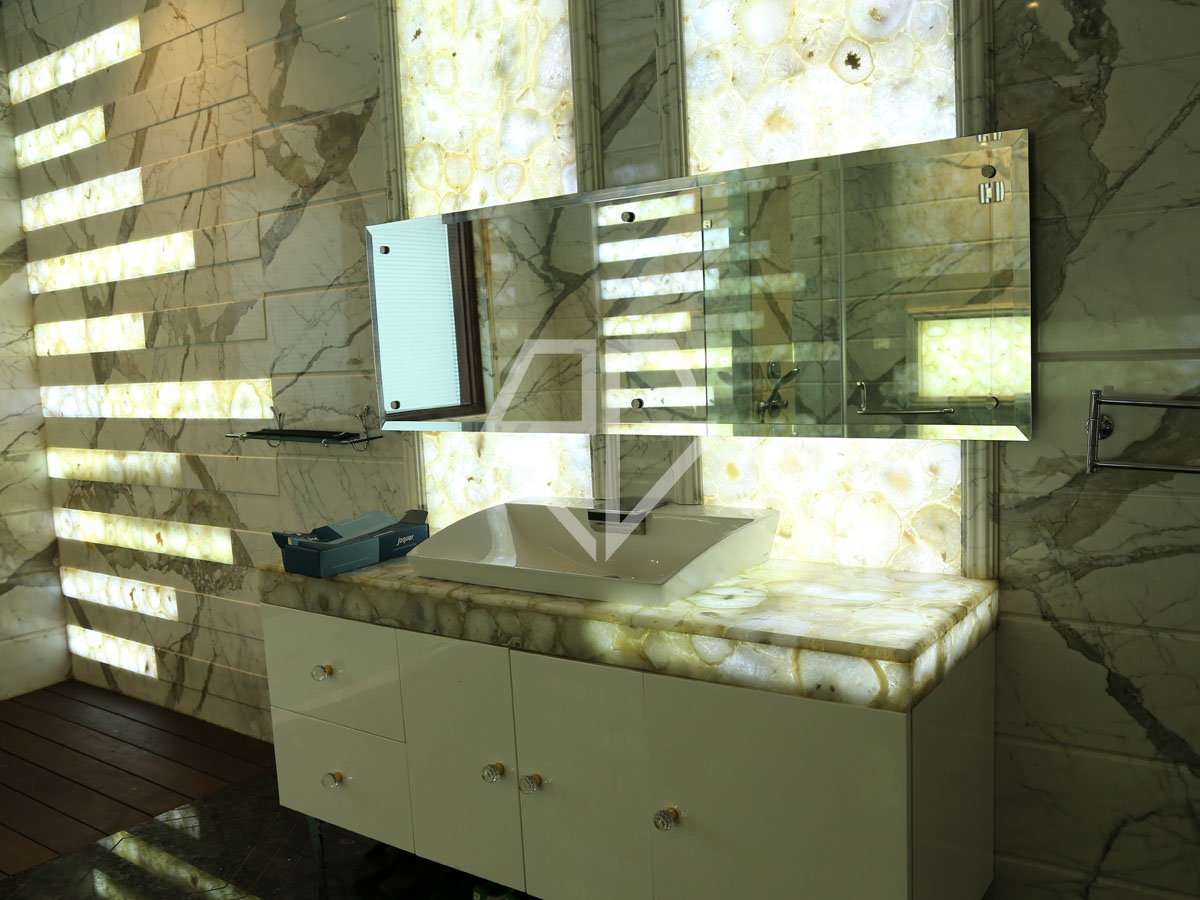 Celebrate the artistry and ingenuity behind Precious Gem Surfaces as you embark on a visual journey through our completed projects. Behold the splendor of semiprecious gemstone slabs meticulously fashioned into timeless masterpieces. Each image tells a story of craftsmanship, elegance, and innovation, reflecting our unwavering commitment to excellence.